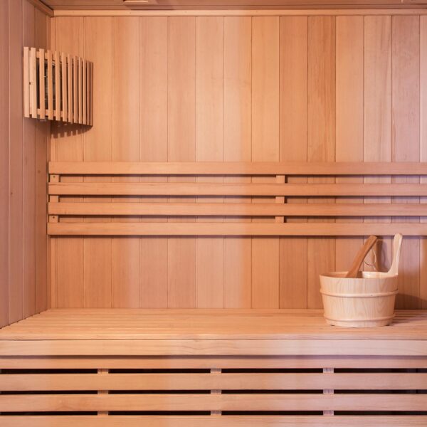 Die Indoorsauna Larvik vereint stilvolles Design mit höchster Qualität. Dank ihrer großzügigen Maße von 200 x 200 x 200 cm bietet sie 4 bis 5 Personen Platz. Das edle Tannenholz sorgt in Kombination mit warmem Licht für ein angenehmes Raumklima. Ausgestattet mit einem leistungsstarken 9 kW Saunaofen, genießen Sie pure Entspannung – ein Wellness-Erlebnis wie aus dem Bilderbuch!