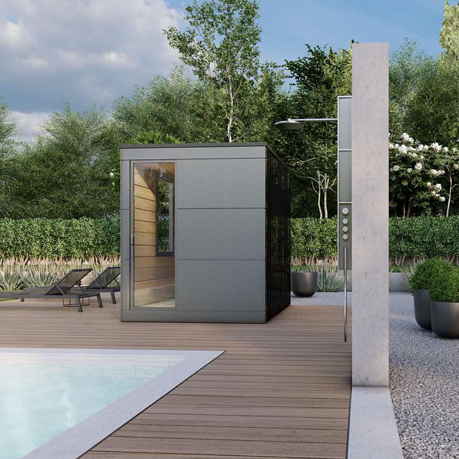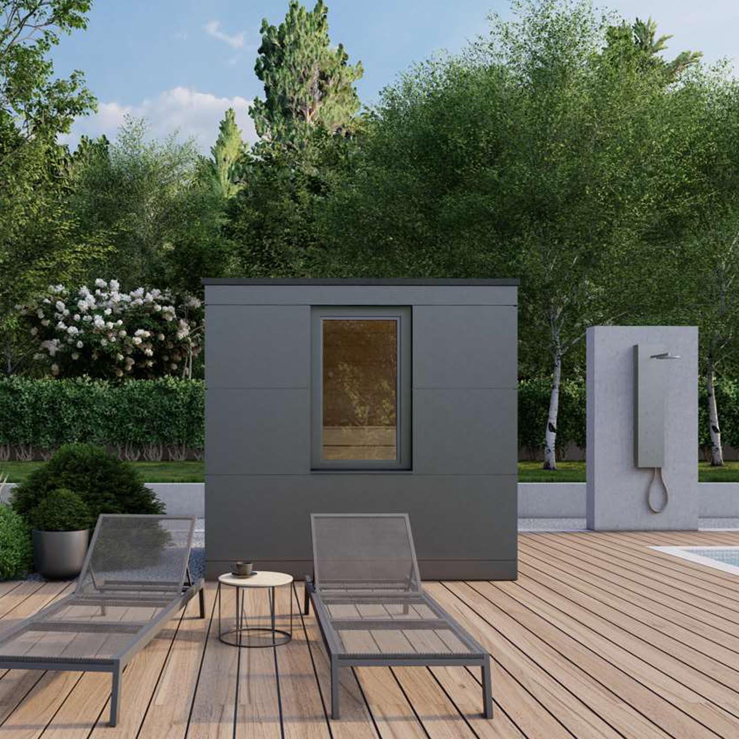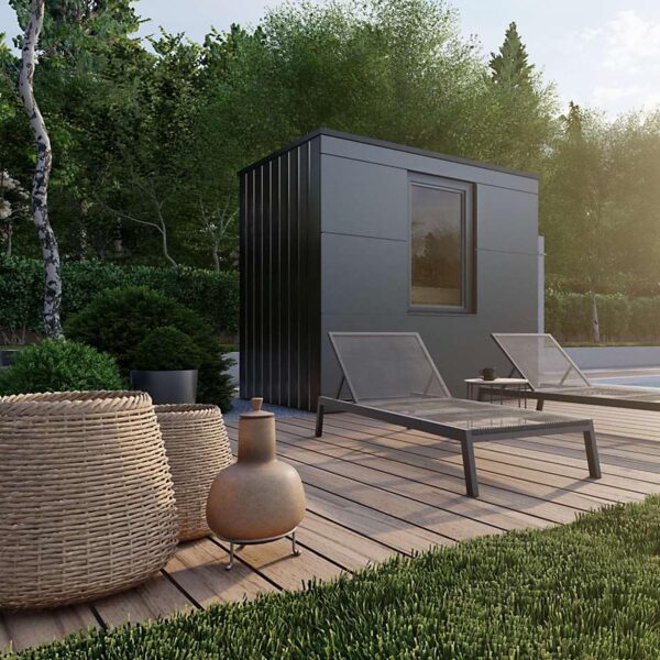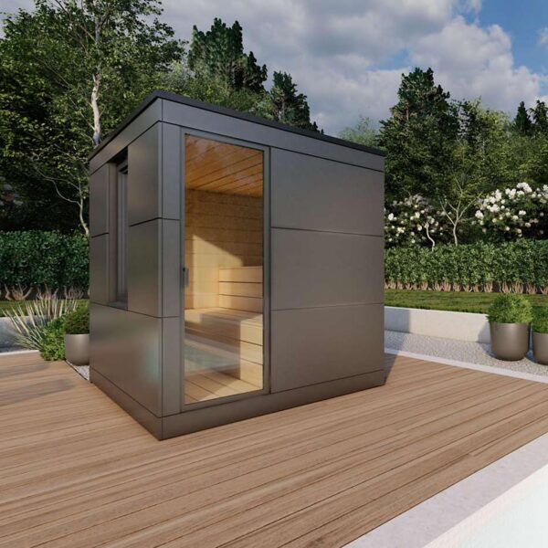 Finden Sie das perfekte Gleichgewicht zwischen Erholung und Genuss. Die Gartensauna Optima vereint modernes Design mit hochwertiger Technik und bietet den idealen Rückzugsort für entspannte Stunden mit Familie und Freunden.