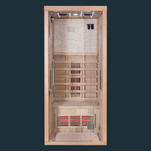 Der Sauna Cube vereint modernes Design mit robuster Bauweise. Gefertigt aus FSC-zertifiziertem Fichtenholz, überzeugt er durch hochwertige Materialien und eine stabile Konstruktion. Dank der doppelbalkenverstärkten Dachkonstruktion hält er hohen Belastungen stand und bietet mit seiner wasserisolierenden SBS-Abdichtung optimalen Schutz. Die große Glasfront sorgt für eine helle, offene Atmosphäre.