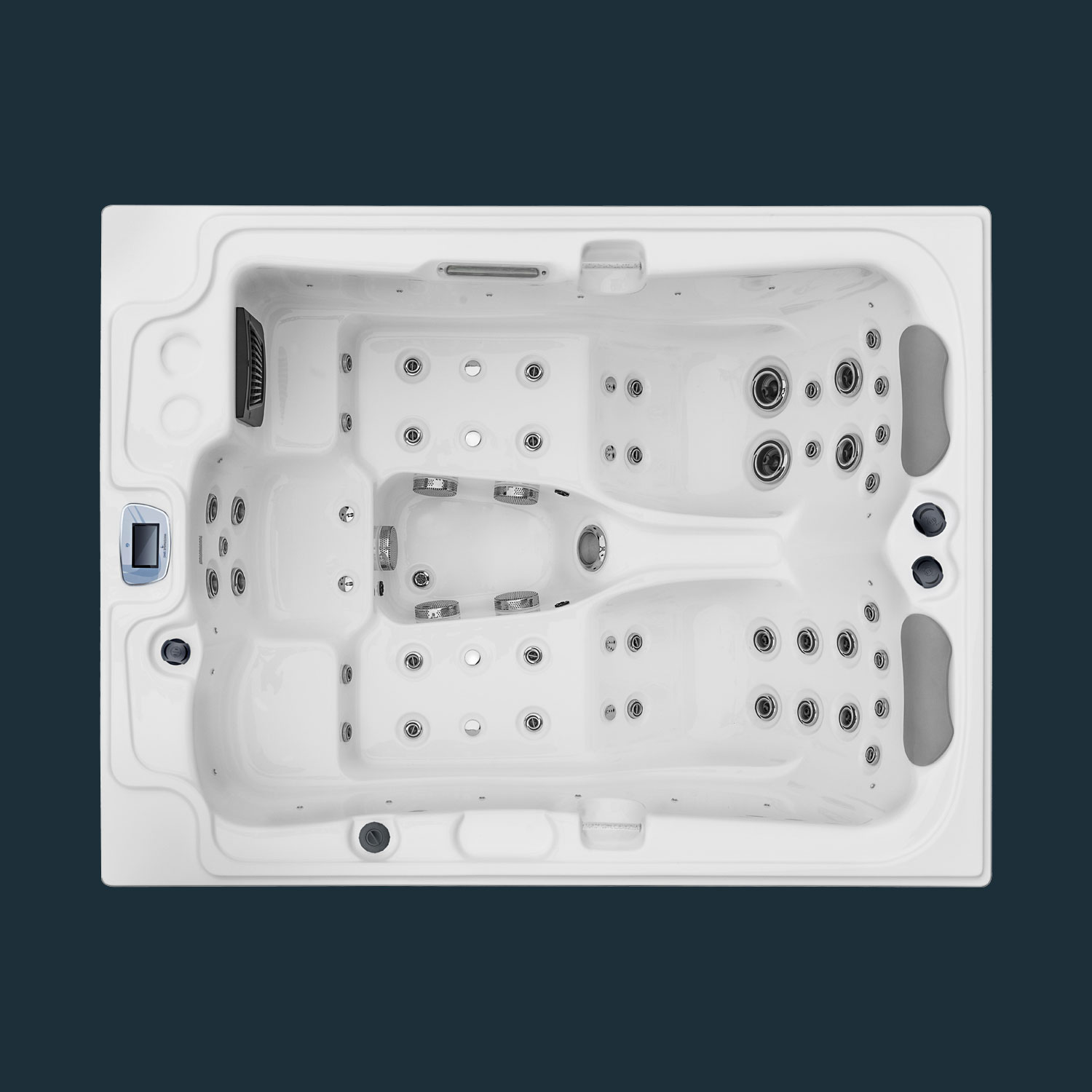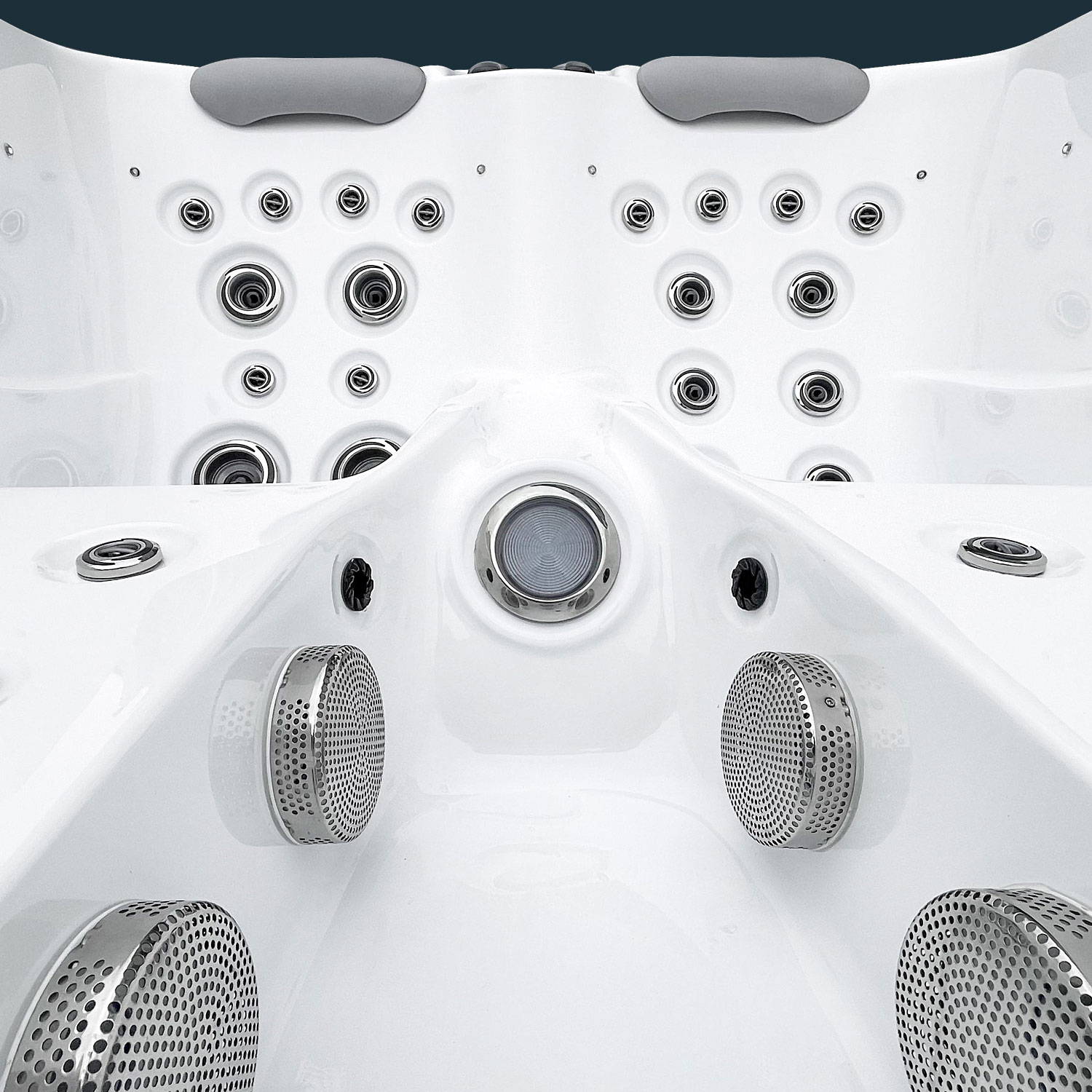 Die ideale Lösung für Paare und 3-köpfige Familien. Lassen Sie Ihre Füsse, Waden, Rücken und Nacken gleichzeitig bis zur vollkommen Entspannung massieren. Die Düsen sind genau so angefertigt, dass grosse sowie kleinere Personen ihre perfekte Position finden.